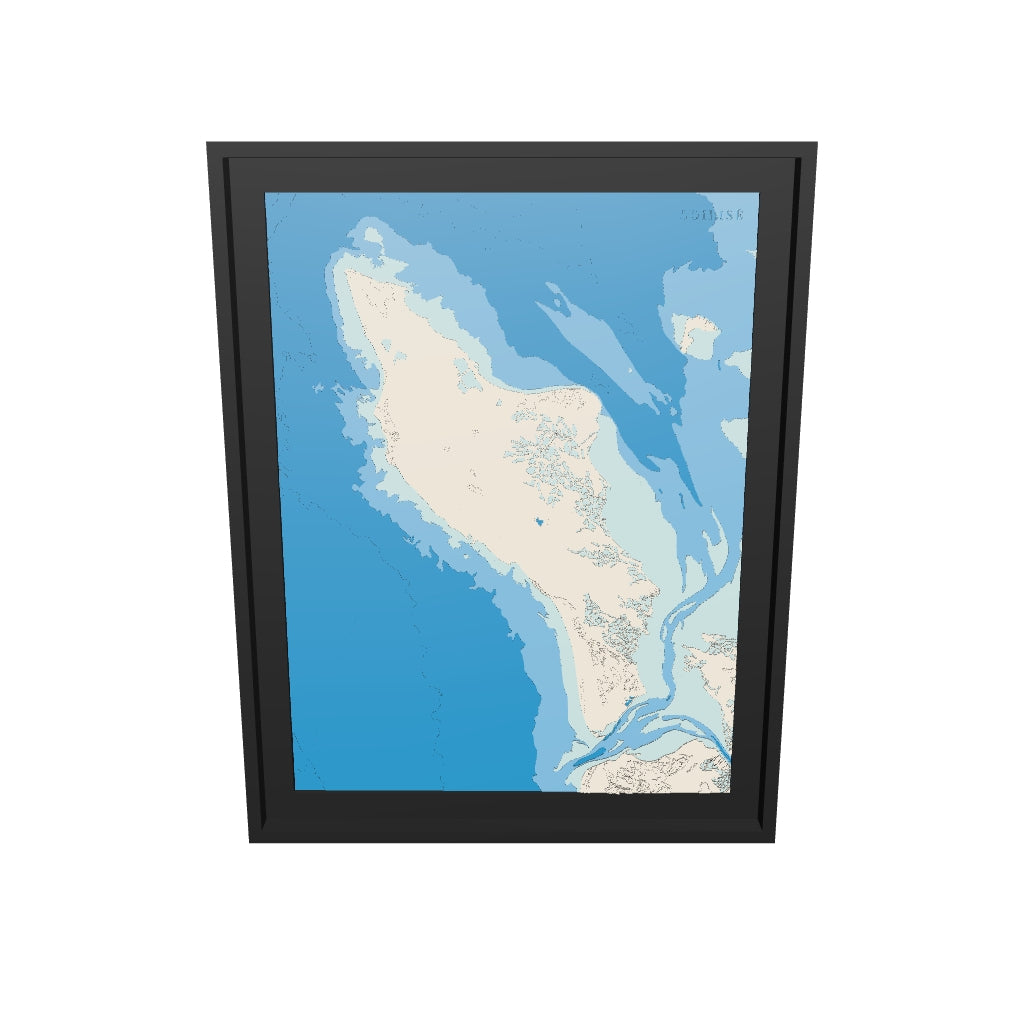 Carte de l'île d'Oléron. La région est précisément recréée en bois, depuis le pertuis de Maumusson jusqu'au sommet de la forêt de Saint-Trojan.